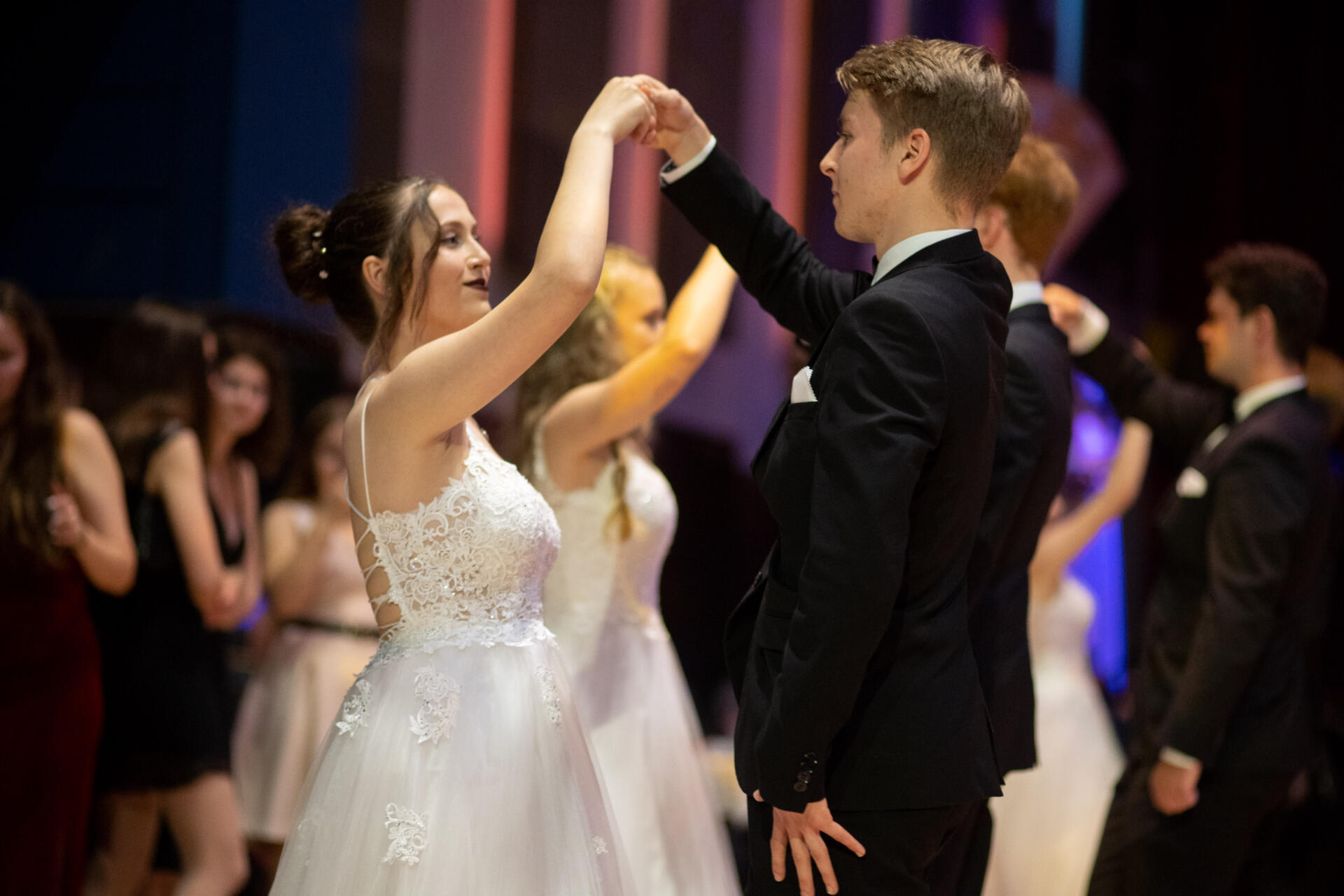 Dlouho to vypadalo, že ani letos kvůli covidovým opatřením maturitní ples nebude, ale nakonec se situace přece jenom zlepšila a maturanti tak moc chtěli, že jsme ples bleskově zorganizovali. Pro nás nezvykle proběhl v kulturním cventru Babylon, které mu dodalo barevnější atmosféru. Také šerpování letos pojali maturanti jinak, dymnamičtěji. Takže bychom se měli pochválit – ples se nám velmi povedl.